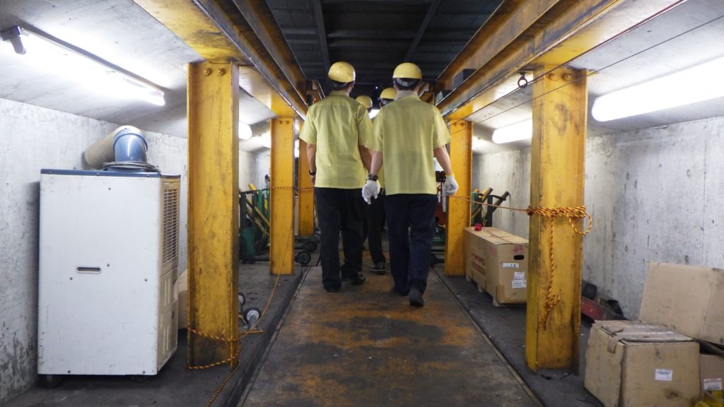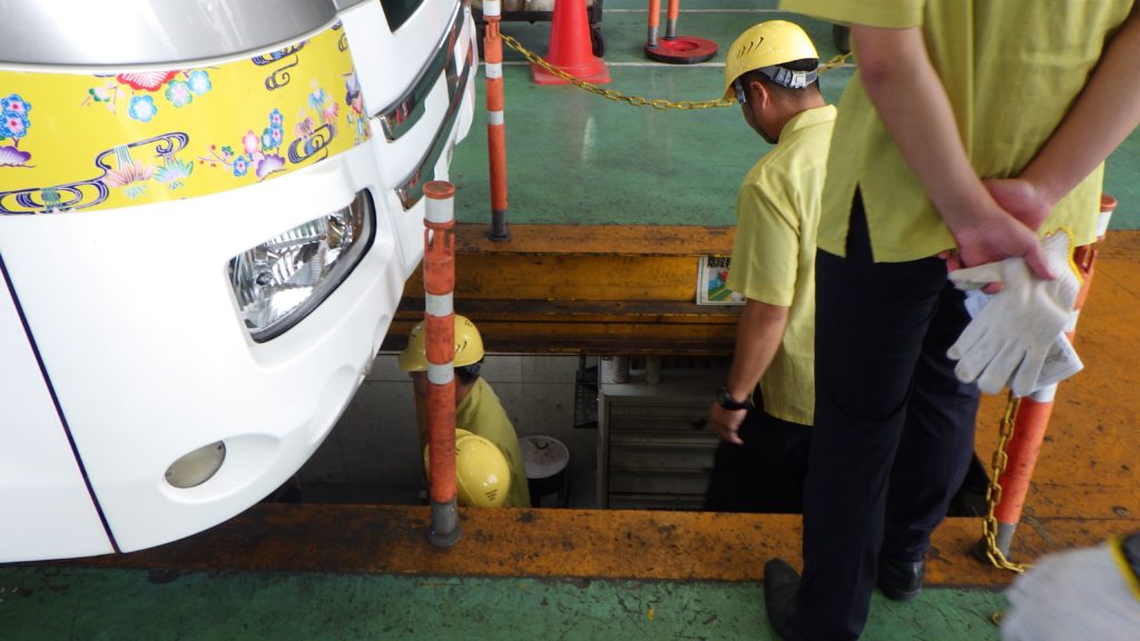 ▼普段入れないピットの中へ!車両下回りの点検箇所を確認していただきました!
